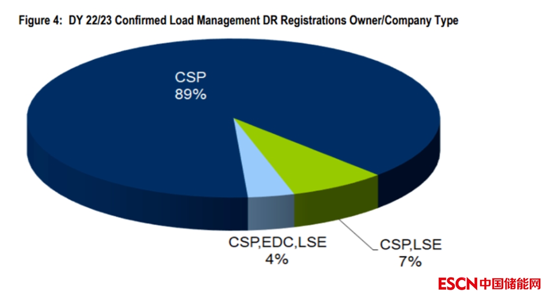 在PJM市場,想要參與需求響應(yīng)的用戶必須先與一家CSP建立代理關(guān)系,CSP可以為用戶提供必要的設(shè)備和軟件系統(tǒng)以進(jìn)行需求響應(yīng),這要求CSP擁有一些基礎(chǔ)設(shè)施并充分了解所有批發(fā)市場規(guī)則和流程,以挖掘市場機會。CSP聚合各類用戶的需求響應(yīng)資源在PJM市場上進(jìn)行報價,并將獲取的收益與用戶進(jìn)行分成。CSP可以是一家只專注于需求響應(yīng)業(yè)務(wù)的公司,也可以是售電公司(load-serving entities,LSEs),還可以是當(dāng)?shù)氐呐潆娋W(wǎng)運營商(electric distribution companies,EDCs)。目前接近9成的CSP都是專注需求響應(yīng)業(yè)務(wù)的專業(yè)公司。