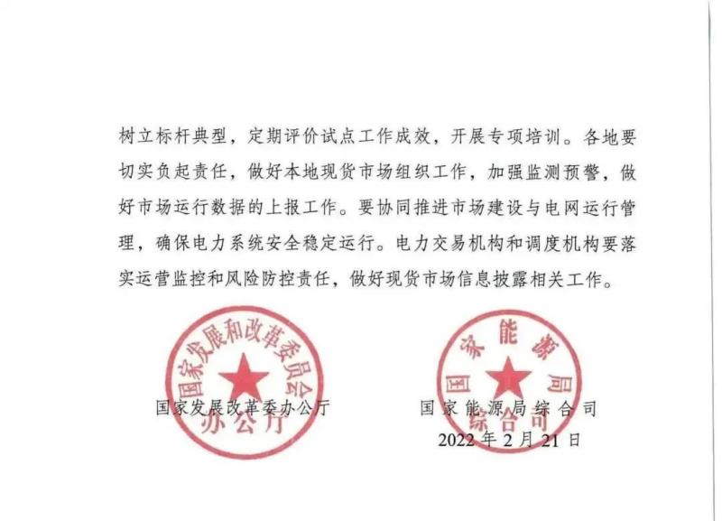 支持具備條件的現(xiàn)貨試點(diǎn)不間斷運(yùn)行,盡快形成長(zhǎng)期穩(wěn)定運(yùn)行的現(xiàn)貨市場(chǎng)。第一批試點(diǎn)地區(qū)(廣東、蒙西、浙江、山西、山東、福建、四川、甘肅)原則上2022年開(kāi)展現(xiàn)貨市場(chǎng)長(zhǎng)周期連續(xù)試運(yùn)行,第二批試點(diǎn)地區(qū)(上海、江蘇、安徽、遼寧、河南、湖北)原則上在2022年6月底前啟動(dòng)現(xiàn)貨市場(chǎng)試運(yùn)行。其他地區(qū)盡快開(kāi)展現(xiàn)貨市場(chǎng)建設(shè)工作。2022年6月底,省間現(xiàn)貨交易啟動(dòng)試運(yùn)行。