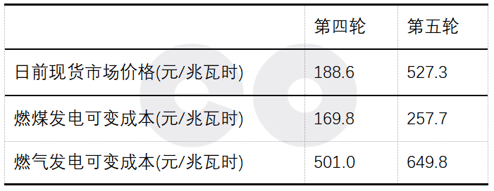 表1列出了第四、第五輪試運(yùn)行期間的燃料成本以及平均市場(chǎng)價(jià)格。值得注意的是,由于廣東的容量補(bǔ)償機(jī)制,燃?xì)鈾C(jī)組每發(fā)1MWh的電能量能獲得200元的補(bǔ)貼,因此燃?xì)鈾C(jī)組的真實(shí)邊際成本應(yīng)當(dāng)比表格中的數(shù)字低200元。研究發(fā)現(xiàn),相較于第四輪試運(yùn)行,第五輪市場(chǎng)價(jià)格增量的65%來(lái)自剩余負(fù)荷的增加,其余大部分則來(lái)自燃料成本的增加。