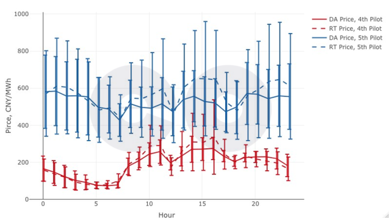 圖3展示了日前市場(chǎng)(DA)以及實(shí)時(shí)市場(chǎng)(RT)各小時(shí)的平均現(xiàn)貨價(jià)格,以及試運(yùn)行期間價(jià)格的波動(dòng)情況(垂直長(zhǎng)條代表標(biāo)準(zhǔn)差)??梢?,第五輪現(xiàn)貨市場(chǎng)價(jià)格波動(dòng)比第四輪更大,實(shí)時(shí)現(xiàn)貨市場(chǎng)價(jià)格波動(dòng)比日前市場(chǎng)更大。這也就意味著對(duì)于零售商來(lái)說(shuō),第五輪的交易風(fēng)險(xiǎn)比第四輪更高,同時(shí)實(shí)時(shí)市場(chǎng)的交易風(fēng)險(xiǎn)比日前市場(chǎng)更高。
