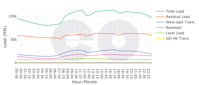 圖2展示了第四、第五輪試運(yùn)行的平均日前負(fù)荷。其中“Total Load”表示廣東電力總負(fù)荷,“Baseload”表示包括核能、風(fēng)電、光伏在內(nèi)的必發(fā)電量,“Local Load”表示不參與市場(chǎng)交易的機(jī)組,“West-east Trans.”以及“GD-HK Trans.”則分別表示西電東送以及粵港聯(lián)線。最后,“Residual Load”則表示參與現(xiàn)貨市場(chǎng)的剩余負(fù)荷??傮w而言,第五輪的電力總負(fù)荷略高于第四輪,但由于第五輪期間西電東送電量急劇減少,導(dǎo)致第五輪參與現(xiàn)貨市場(chǎng)的發(fā)電量遠(yuǎn)高于第四輪。