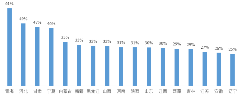 截至2021年底各地區(qū)累計光伏發(fā)電裝機(萬千瓦)及占本地區(qū)總裝機比重