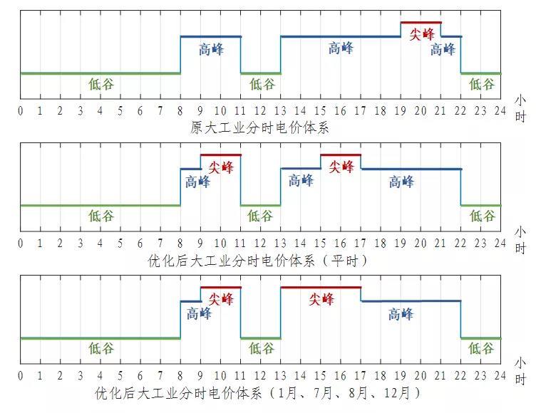 ● 對(duì)大工業(yè)電價(jià)峰谷時(shí)段進(jìn)行了優(yōu)化調(diào)整,調(diào)整為三費(fèi)率八時(shí)段。具體為:
