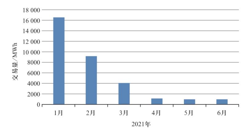 2019年9月17日,日本東京商品交易所正式上線了日本首個電力期貨交易,用以降低電價波動風險。具體來看,新電力期貨合約包括東京基本負荷期貨、東京峰值負荷期貨、關(guān)西基本負荷期貨和關(guān)西峰值負荷期貨,上述期貨合約將使用JEPX公布的相關(guān)地區(qū)(東京或關(guān)西)30 min現(xiàn)貨市場(日前)價格的算術(shù)平均值,以日元進行現(xiàn)金交割。交易周期為15個月,交易方式為集中競價。2021年東京商品交易所電力期貨交易量如圖4所示。