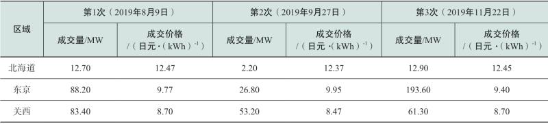 如表1所示,2020年日本交割的基荷電力分別于2019年8月、9月和11月進行了競價交易,分為北海道、東京和關(guān)西3個區(qū)域市場進行。從交易價格來看,基荷電力市場價格并不低于現(xiàn)貨市場平均價格(2019年現(xiàn)貨市場均價7.93日元/kWh),基荷市場并未突顯價格優(yōu)勢。從交易量來看,3個市場成交量為534.3 MW,相當于每年4.68 TWh,僅占新電力公司2019年度全部售電量(129.1 TWh)的3.6%。