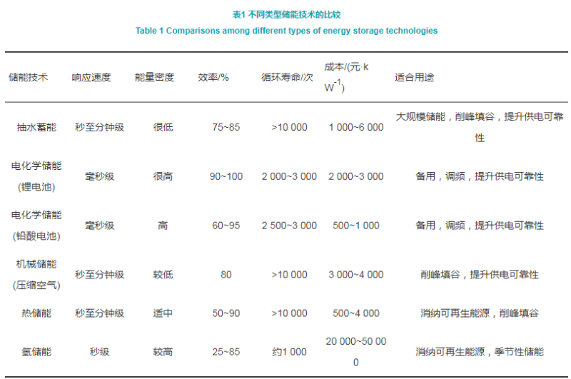 不同類型的儲能在響應(yīng)速度、能量密度、效率、壽命、經(jīng)濟(jì)成本、潛在應(yīng)用上有所差異,歸納如表1。儲能依靠其物理特性,在電力系統(tǒng)中具備諸多潛在價(jià)值,可在市場上提供相應(yīng)的標(biāo)的。