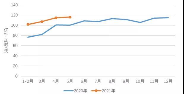 1-5月,全國工業(yè)用電量21381億千瓦時(shí),同比增長(zhǎng)18.5%,增速比上年同期提高22.4個(gè)百分點(diǎn),占全社會(huì)用電量的比重為66.2%。5月份,全國工業(yè)用電量4624億千瓦時(shí),同比增長(zhǎng)11.6%,增速比上年同期提高8.8個(gè)百分點(diǎn),占全社會(huì)用電量的比重為68.8%。