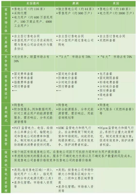 表1. 美國德州、澳洲、英國電力零售市場情況