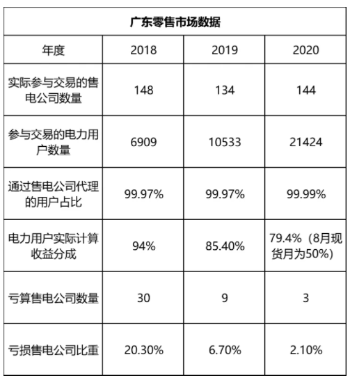 隨著現(xiàn)貨市場試點的不斷推進,電力交易對售電公司的要求越來越高。廣東電力交易中心相關(guān)人士介紹,一些售電公司已經(jīng)在市場中表現(xiàn)出了越來越高的水平,例如去年8月售電公司在現(xiàn)貨市場中總體平均申報準確率達到98%。從歷年廣東電力市場年度報告披露的數(shù)據(jù)也可以看到,從18年到20年,售電公司的總體盈利能力也在持續(xù)提升。