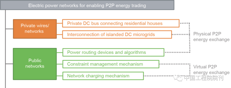 電力網(wǎng)絡(luò)用于傳輸用戶在端對(duì)端能源交易中所達(dá)成的電量。相關(guān)解決方案可以分為兩類,如圖9所示。