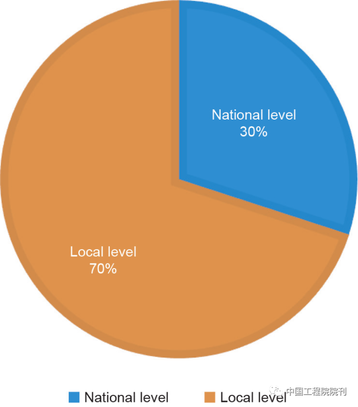 如圖4所示,美國(guó)和歐洲國(guó)家的端對(duì)端能源交易的相關(guān)實(shí)踐最為活躍,其中美國(guó)和德國(guó)擁有世界上最多數(shù)量的端對(duì)端能源交易工程項(xiàng)目。圖5顯示70%的工程項(xiàng)目聚焦于本地層級(jí),具體包括樓宇、社區(qū)、微網(wǎng)和配電網(wǎng)等。另外30%的工程項(xiàng)目聚焦于全國(guó)層級(jí),具體解決跨不同大區(qū)或電力批發(fā)市場(chǎng)中發(fā)電機(jī)組和用戶間的端對(duì)端能源交易問題。