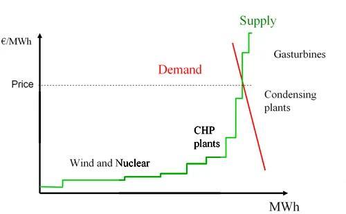 德州的電力市場(chǎng)是一個(gè)相當(dāng)?shù)湫偷摹癊nergy only”的電力市場(chǎng),也就是說(shuō),德州沒(méi)有電力容量市場(chǎng),即沒(méi)有除了買(mǎi)電賣(mài)電的能量市場(chǎng)以外的機(jī)制去保證電廠建的足夠多。在電力市場(chǎng)設(shè)計(jì)的問(wèn)題上,“Energy-only” vs “Capacity market”一直是一個(gè)爭(zhēng)議問(wèn)題。根據(jù)電力市場(chǎng)供需曲線的關(guān)系(如下圖),電力批發(fā)價(jià)格在需求高峰飆高。保證電力機(jī)組容量的充足性、建設(shè)足夠多的電廠一直是個(gè)復(fù)雜的問(wèn)題。電廠建設(shè)跟不上需求增長(zhǎng),電力機(jī)組容量過(guò)低,就很容易發(fā)生批發(fā)市場(chǎng)價(jià)格極高的問(wèn)題,帶來(lái)市場(chǎng)不確定的風(fēng)險(xiǎn)。在極端情況下,就會(huì)成為人道主義災(zāi)難。
