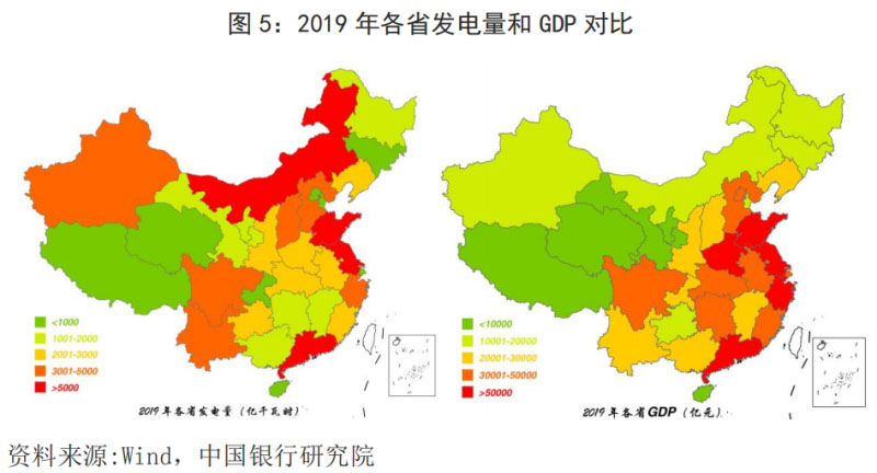 例如,作為能源大省,內(nèi)蒙古 2019 年的發(fā)電量達 5495.08 億千瓦時,占全國總發(fā)電量的 7.3%,而 GDP 僅有 13612.7 億元,只占全國 GDP 的 1.4%;作為經(jīng)濟中心城市之一,上海市2019年的GDP占比為3.9%,而發(fā)電量占比僅為1.1%。通常情況下,經(jīng)濟發(fā)達地區(qū)的用電需求相對較高,我國電力負荷中心主要分布在華東、華中及南方地區(qū),需要通過跨區(qū)域調(diào)配實現(xiàn)電能的供需平衡。