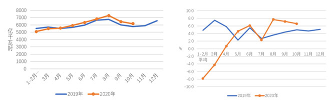 圖1 2019、2020年分月全社會(huì)用電量及其增速