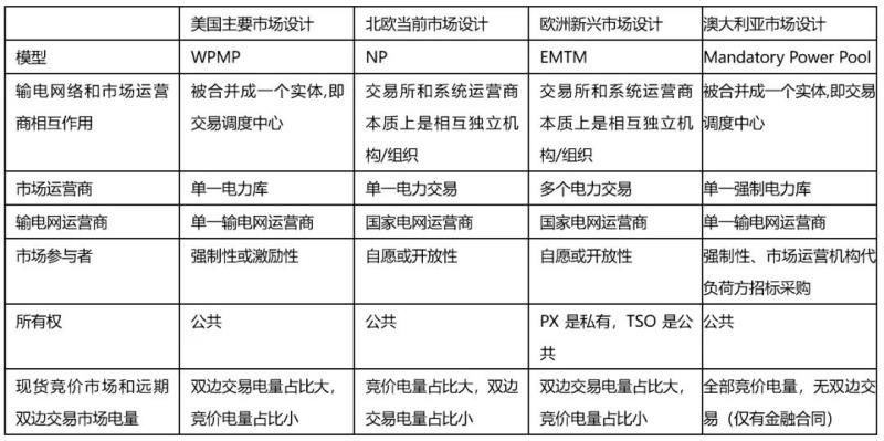 4.2 電力市場(chǎng)設(shè)計(jì)比較