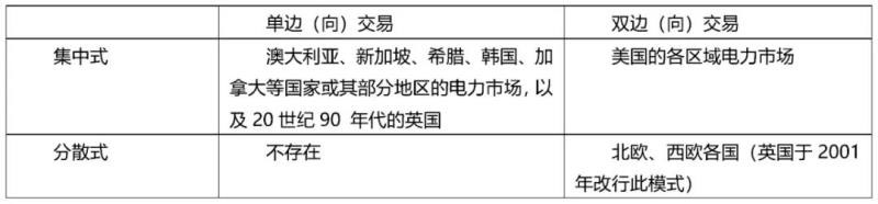 可見,按照第一中劃分方法,單邊(向)交易和雙邊(向)交易是對(duì)應(yīng)的,即要么是強(qiáng)制性電力庫模式,要么是基于平衡機(jī)制的雙邊交易模式,目前不存在第三種模式。按照第二種劃分方法,做不做安全校核是對(duì)應(yīng)的,即要么是集中式,要么是分散式,同樣不存在第三種模式。