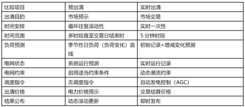 澳大利亞國(guó)家電力市場(chǎng)設(shè)計(jì)了兩種不同市場(chǎng)功能的出清過程,市場(chǎng)預(yù)出清與實(shí)時(shí)市場(chǎng)出清,它們使用同一技術(shù)支持系統(tǒng)與優(yōu)化調(diào)度程序。電力市場(chǎng)出清是市場(chǎng)運(yùn)行中心根據(jù)發(fā)電企業(yè)報(bào)價(jià)或更改的報(bào)價(jià),用電負(fù)荷預(yù)測(cè)以及電網(wǎng)運(yùn)行狀態(tài),在滿足輸電載流約束條件下,按照經(jīng)濟(jì)調(diào)度原則進(jìn)行優(yōu)化安排決定發(fā)電機(jī)組(站)出力的過程。建立預(yù)出清機(jī)制是為了鼓勵(lì)市場(chǎng)主體在電力系統(tǒng)運(yùn)行可能出現(xiàn)問題情況時(shí)做出積極反應(yīng),以盡可能地避免運(yùn)行中心采用強(qiáng)制性的干預(yù)措施。市場(chǎng)預(yù)出清與實(shí)時(shí)市場(chǎng)出清有幾點(diǎn)不同。首先,市場(chǎng)預(yù)出清產(chǎn)生的發(fā)電出力不用于傳送自動(dòng)發(fā)電控制(AGC)執(zhí)行指令。其次,預(yù)出清電價(jià)并不用于交易結(jié)算。除了與各州電力負(fù)荷預(yù)報(bào)對(duì)應(yīng)市場(chǎng)出清電力價(jià)格外,市場(chǎng)預(yù)出清還計(jì)算每個(gè)州電力價(jià)格對(duì)電力負(fù)荷變化的敏感程度。預(yù)出清機(jī)制的另外一個(gè)市場(chǎng)功能是在實(shí)時(shí)市場(chǎng)出清發(fā)生故障時(shí),用最臨近一次的預(yù)出清做為備案替代實(shí)時(shí)出清。表2對(duì)市場(chǎng)預(yù)出清和實(shí)時(shí)出清進(jìn)行了比較。