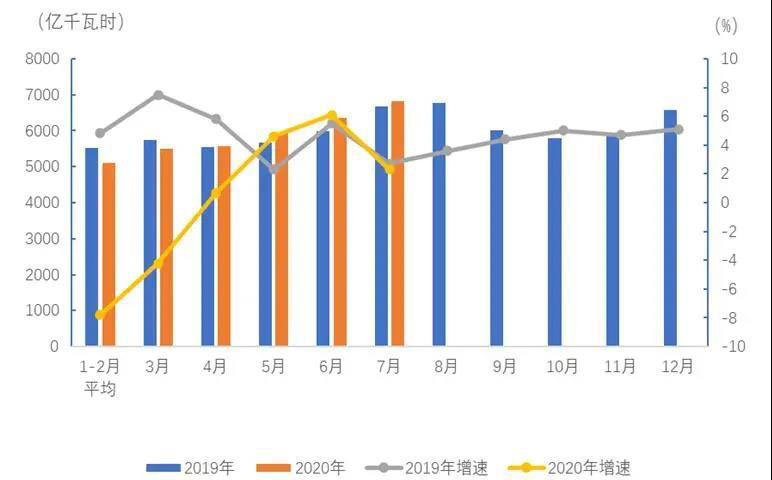 1-7月,全國(guó)全社會(huì)用電量40381億千瓦時(shí),同比下降0.7%,其中,7月份全國(guó)全社會(huì)用電量6824億千瓦時(shí),同比增長(zhǎng)2.3%。