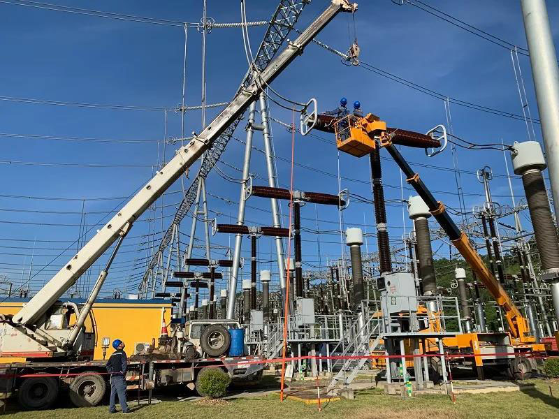 酷暑鏖戰(zhàn),南方電網(wǎng)超高壓公司南寧局員工完成2個間隔設(shè)備自主檢修工作。 陳光 攝