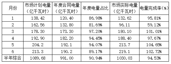 一、上半年電量完成情況