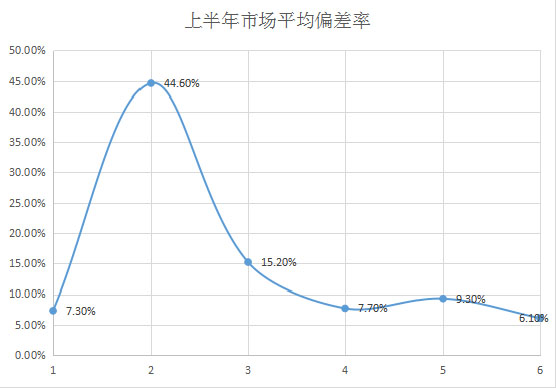 圖2 2020年1-6月份市場平均偏差率