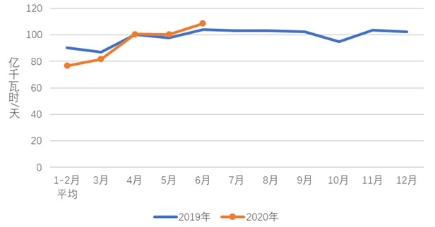 6月份,化工行業(yè)用電量382億千瓦時(shí),同比增長(zhǎng)1.8%,增速比上年同期提高1.0個(gè)百分點(diǎn);建材行業(yè)用電量370億千瓦時(shí),同比增長(zhǎng)8.0%,增速比上年同期提高1.1個(gè)百分點(diǎn);黑色金屬冶煉行業(yè)用電量523億千瓦時(shí),同比增長(zhǎng)4.0%,增速比上年同期回落8.5個(gè)百分點(diǎn);有色金屬冶煉行業(yè)515億千瓦時(shí),同比增長(zhǎng)2.6%,增速比上年同期提高1.4個(gè)百分點(diǎn)。