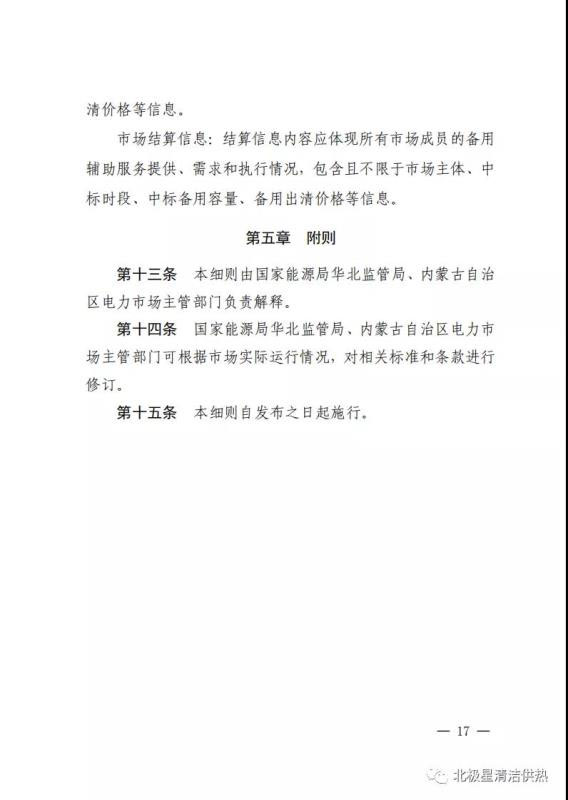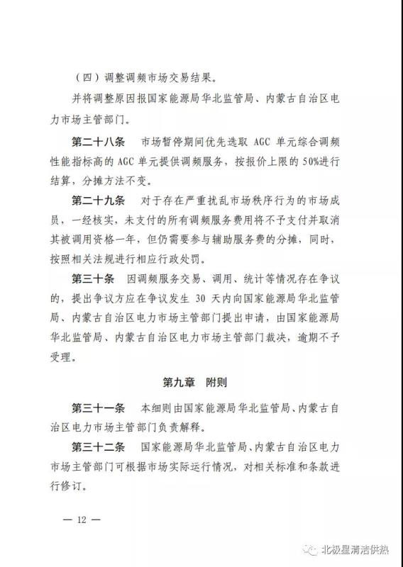 蒙西電力市場調(diào)頻、備用輔助服務(wù)交易實(shí)施細(xì)則(試行)