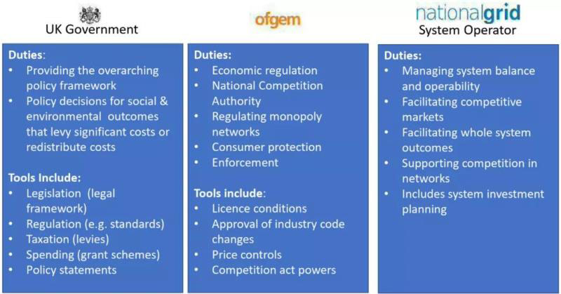 英國(guó)電力市場(chǎng)監(jiān)管主要包括天然氣與電力市場(chǎng)管理局(GEMA)、天然氣與電力監(jiān)管辦公室(OFGEM)和競(jìng)爭(zhēng)與市場(chǎng)管理局(CMA)等3個(gè)政府機(jī)構(gòu)。