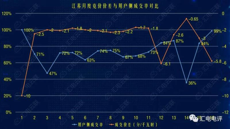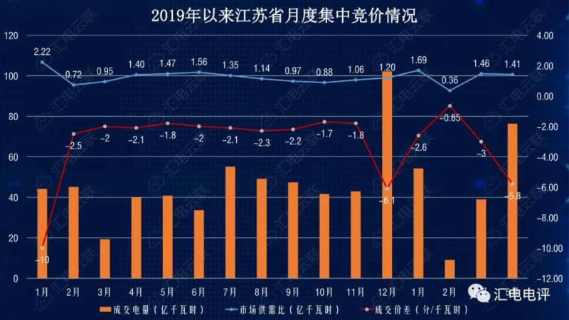 本次月度集中競價(jià)價(jià)差高達(dá)5.8分/千瓦時(shí),同時(shí)成交電量超過76億千瓦時(shí),量價(jià)同時(shí)放“大”。除2019年第12月特殊情況外(詳見:交易復(fù)盤:江蘇省月度掛牌價(jià)差高達(dá)15.6分/千瓦時(shí)),交易量和讓利水平都創(chuàng)一年來新高。