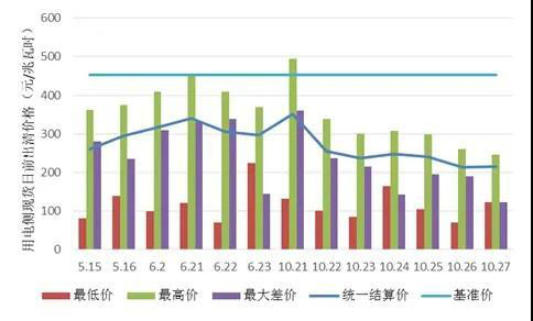 圖2 南方(以廣東起步)試點(diǎn)結(jié)算試運(yùn)行用電側(cè)現(xiàn)貨日前出清價(jià)格