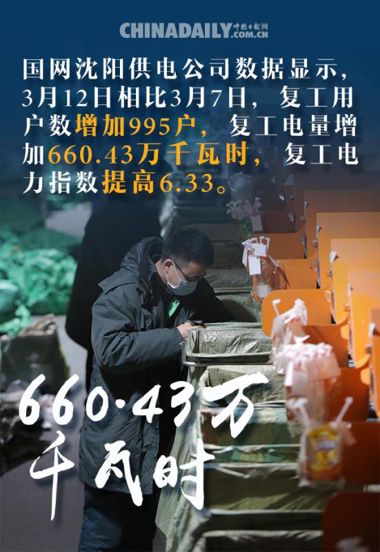 國家發(fā)展改革委3月17日公布最新數(shù)據(jù)顯示,從電網(wǎng)企業(yè)監(jiān)測的用電情況看,目前有色金屬行業(yè)用電量已達到去年正常水平;醫(yī)藥、化工、電子行業(yè)用電量已恢復(fù)到正常水平的九成以上;鋼鐵、機械、紡織行業(yè)用電量恢復(fù)到正常水平的八成以上。鐵路裝車數(shù)已恢復(fù)到正常水平,民航、港口、水運均正常運營。