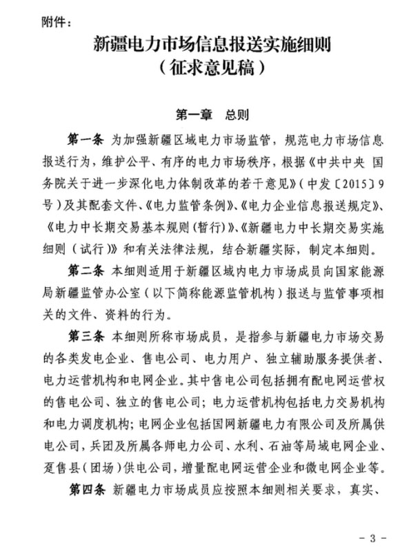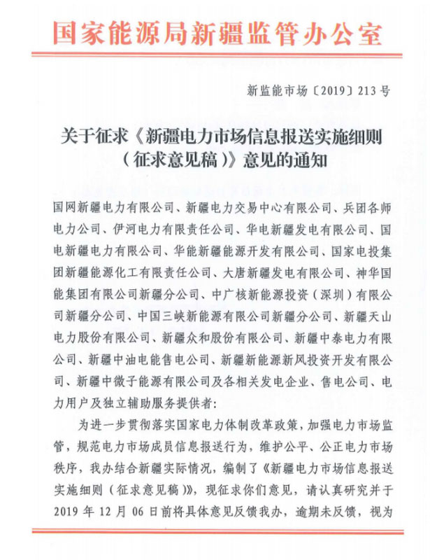 《新疆電力市場(chǎng)信息報(bào)送實(shí)施細(xì)則(征求意見(jiàn)稿)》印發(fā)