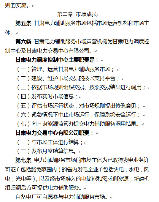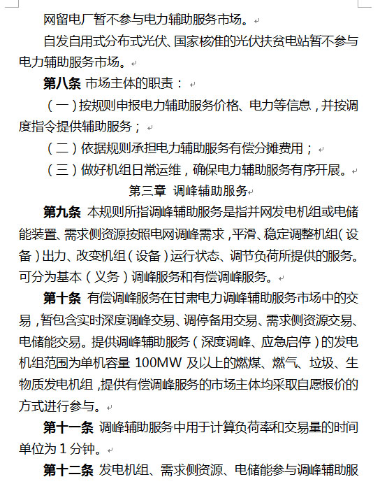 以下是《通知》及《甘肅省電力輔助服務(wù)市場(chǎng)運(yùn)營(yíng)規(guī)則(暫行)》: