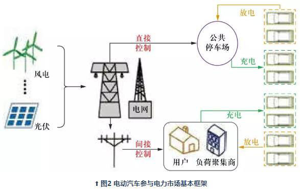 電動(dòng)汽車(chē)直接參與電力市場(chǎng)交易是指電網(wǎng)直接控制大型公共停車(chē)場(chǎng)中的充電樁,通過(guò)分時(shí)電價(jià)、實(shí)時(shí)電價(jià)、打捆交易等措施引導(dǎo)電動(dòng)汽車(chē)用戶有序充放電,以滿足電網(wǎng)穩(wěn)定運(yùn)行需求,促進(jìn)可再生能源消納,其原理如圖3所示。