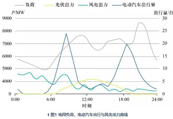 根據(jù)電動(dòng)汽車(chē)與可再生能源出力關(guān)系,如圖1所示,探索電力市場(chǎng)環(huán)境下影響電動(dòng)汽車(chē)的充放電時(shí)序的關(guān)鍵因素。