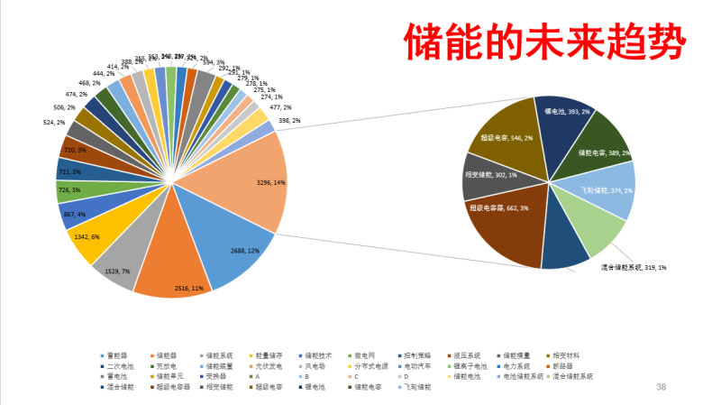 最后,我來介紹一下未來儲能調(diào)頻項(xiàng)目的發(fā)展趨勢及展望,這個圖是我統(tǒng)計(jì)了目前能在互聯(lián)網(wǎng)上檢索到和儲能相關(guān)正規(guī)出版的期刊論文、技術(shù)文章,大概有2萬篇,我應(yīng)用大數(shù)據(jù)分析技術(shù),把關(guān)鍵詞整理出來,里邊大概有3296篇講的是儲能技術(shù),因?yàn)橹v到很多,這是直接和儲能技術(shù)路線相關(guān),摘出來以后,未來講得比較多的是右邊的餅狀圖。飛輪儲能、混合儲能系統(tǒng),混合儲能的關(guān)鍵詞數(shù)量達(dá)到了1/3的占比,廣東院推廣的混合儲能方案用的是飛輪儲能+鋰電池儲能,飛輪儲能壽命相比超級電容有非常大的優(yōu)勢,超級電容也是化學(xué)儲能的一種,在安全性上也是存在一定的風(fēng)險。