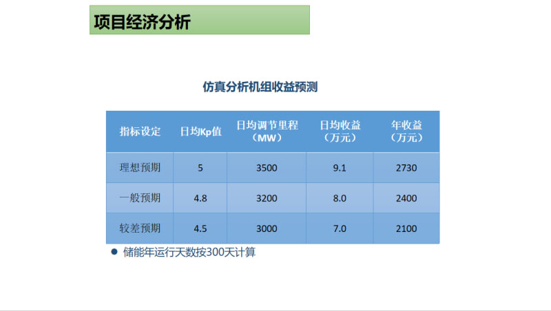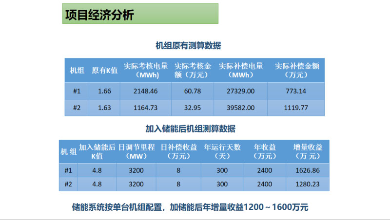 最后在經(jīng)濟(jì)性方面,系統(tǒng)總體的造價大概是4000萬左右,現(xiàn)在有可能高、有可能低,一些配件價格是在波動的。上面的計(jì)算表格是沒加入混合儲能的測算情況,下面的是加入混合儲能的情況,加入混合儲能以后,每年的增量收益在1200到1600萬左右。
