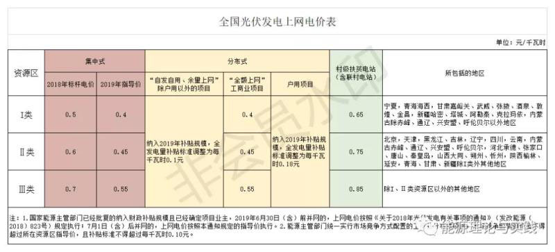 2019年4月28日,《國(guó)家發(fā)展改革委關(guān)于完善光伏發(fā)電上網(wǎng)電價(jià)機(jī)制有關(guān)問(wèn)題的通知》(發(fā)改價(jià)格〔2019〕761號(hào)),將集中式光伏電站標(biāo)桿上網(wǎng)電價(jià)改為指導(dǎo)價(jià),新增集中式光伏電站上網(wǎng)電價(jià)原則上通過(guò)市場(chǎng)競(jìng)爭(zhēng)方式確定,不得超過(guò)所在資源區(qū)指導(dǎo)價(jià)。能源主管部門(mén)統(tǒng)一實(shí)行市場(chǎng)競(jìng)爭(zhēng)方式配置的工商業(yè)分布式項(xiàng)目,市場(chǎng)競(jìng)爭(zhēng)形成的價(jià)格不得超過(guò)所在資源區(qū)指導(dǎo)價(jià),且補(bǔ)貼標(biāo)準(zhǔn)不得超過(guò)每千瓦時(shí)0.10元。