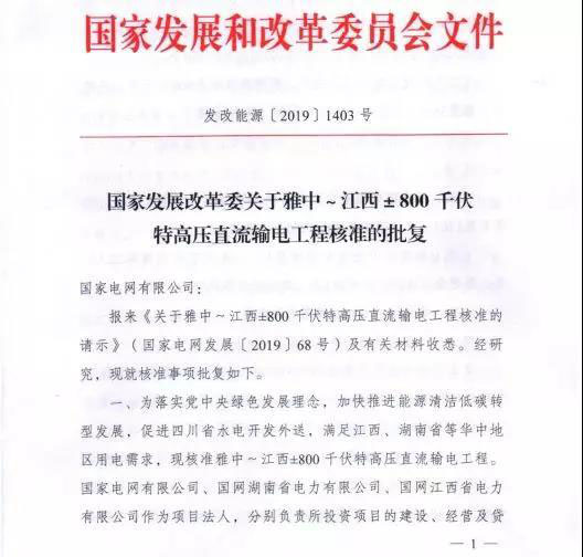 自從雅中直流落點確定為江西南昌后,傳言去年第四季度核準(zhǔn)遲遲無下文。2019年8月23日,國家發(fā)改委核準(zhǔn)批復(fù)雅中-江西±800千伏特高壓直流輸電工程,標(biāo)志著該工程正式進(jìn)入建設(shè)實施階段。