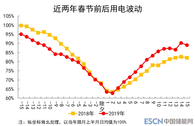 二是谷底持續(xù)提升。2019年春節(jié)假期日發(fā)電量最低值出現(xiàn)在正月初二,同比增長5.1%,為臘月上半月平均值的62.9%,與往年谷底水平相當(dāng)。這一方面反映出城鄉(xiāng)居民生活、餐飲及旅游消費(fèi)增長較好,消費(fèi)對經(jīng)濟(jì)增長的基礎(chǔ)性作用持續(xù)顯現(xiàn);一方面反映出工業(yè)運(yùn)行總體平穩(wěn),未出現(xiàn)形勢明顯波動或大面積企業(yè)關(guān)停。