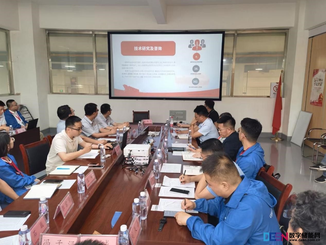 參觀結(jié)束后,雙方進(jìn)行了技術(shù)交流座談,王弋飛為調(diào)研團(tuán)一行重點(diǎn)介紹了公司各業(yè)務(wù)線發(fā)展、風(fēng)光儲(chǔ)電站電網(wǎng)適應(yīng)性檢測(cè)平臺(tái)、光儲(chǔ)變流器測(cè)試方案以及電池測(cè)試能力建設(shè)等情況。