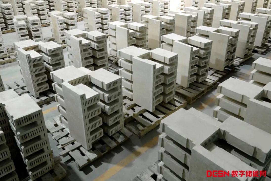 Rondo能源公司制成熱電池的磚塊在生產(chǎn)設(shè)施內(nèi)整齊排列。圖片來(lái)源:《新科學(xué)家》網(wǎng)站