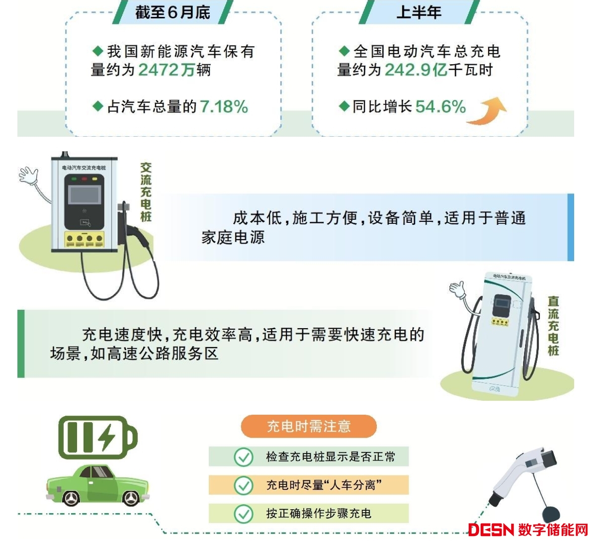 電動(dòng)汽車?yán)眯铍姵刈鳛閮?chǔ)能動(dòng)力源,通過電池向電動(dòng)機(jī)提供電能,驅(qū)動(dòng)電動(dòng)機(jī)運(yùn)轉(zhuǎn),從而推動(dòng)汽車行駛。電動(dòng)汽車的電池容量比較大,一般都可以進(jìn)行快充或慢充。慢充指交流慢充,用的是交流充電樁。快充指直流快充,用的是直流充電樁,