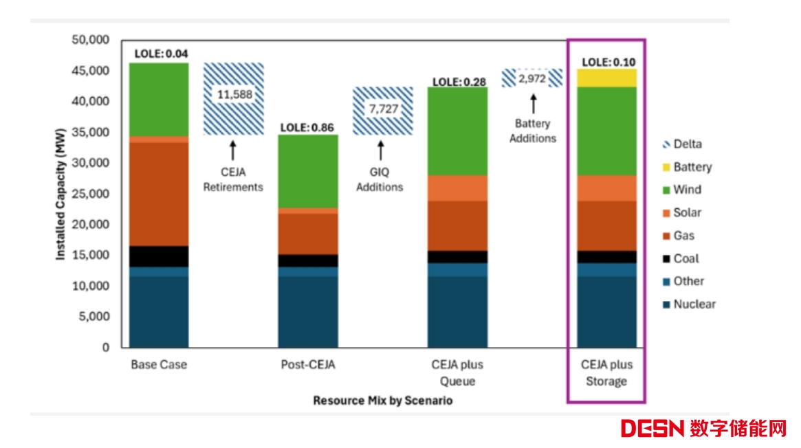 (4)CEJA +儲(chǔ)能:CEJA +隊(duì)列+滿足LOLE目標(biāo)所需的儲(chǔ)能系統(tǒng)。