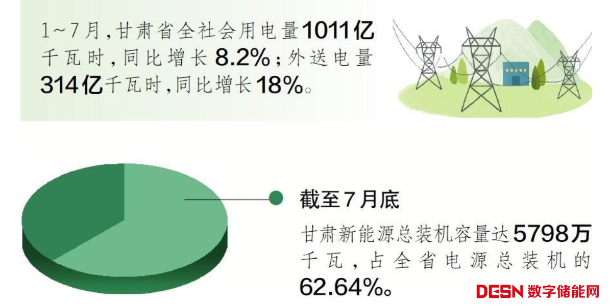 中國儲(chǔ)能網(wǎng)訊:8月30日獲悉,1~7月,甘肅省全社會(huì)用電量1011億千瓦時(shí),同比增長8.2%;外送電量314億千瓦時(shí),同比增長18%。