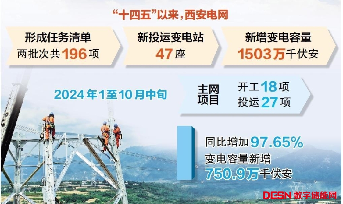 今年截至10月15日,西安供電公司已開(kāi)工主網(wǎng)項(xiàng)目18項(xiàng),投運(yùn)主網(wǎng)項(xiàng)目27項(xiàng),新增變電容量750.9萬(wàn)千伏安,同比增加97.65%,新增線路374.729千米,同比增長(zhǎng)60.6%。