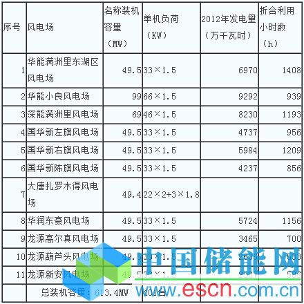 大唐河北崇禮西橋梁風(fēng)電場(chǎng),其中的33臺(tái)1.5MW風(fēng)電機(jī)組,容量49.5MW,在2011年3月全部投入運(yùn)營(yíng), 在2012年的發(fā)電量為12621萬千瓦時(shí),利用小時(shí)數(shù)2550h。