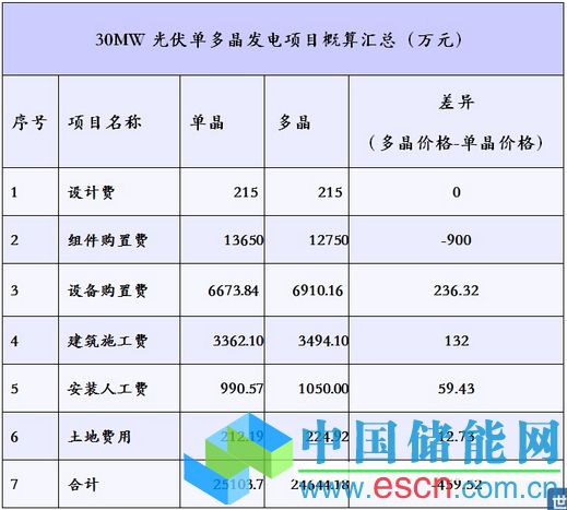 3、在同樣裝機(jī)容量的電站中,單晶硅電站要比多晶硅電站占地面積少5.32%;