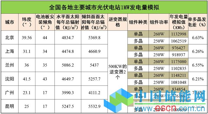 據(jù)上分析,我們可得出1MWp單多晶光伏電站在國(guó)內(nèi)各地區(qū)發(fā)電量差異分析: