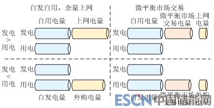 微網(wǎng)優(yōu)勢(shì)之一是促進(jìn)分布式能源的就地消納,目前微網(wǎng)內(nèi)風(fēng)光等分布式能源主要采取“自發(fā)自用,余量上網(wǎng)”的運(yùn)營(yíng)模式,富余或不足部分電量由外部電網(wǎng)接收或提供。